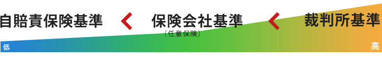 自賠責保険基準と保険会社基準の差はそれほどありませんが、裁判所基準との差は2〜3倍以上になるケースがあります。保険会社は出来るだけ自賠責保険基準に近い金額で交渉してきます。